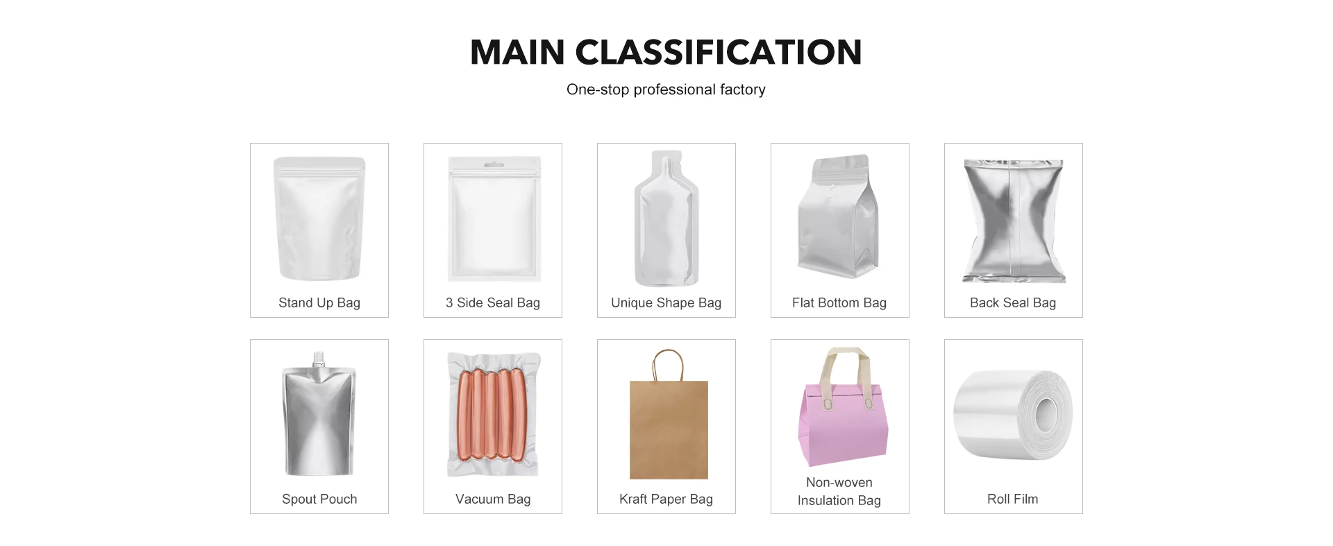 주요 제품:플라스틱 트레이; Ziplock 가방; 밸브 가방; 여덟 측면 밀봉 가방; 주둥이 주머니